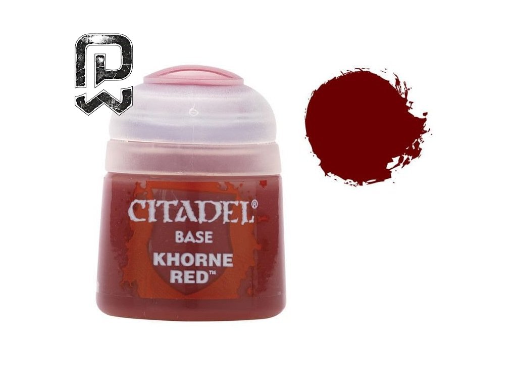 Khorne Red je základová farba z radu Citadel Base. Je navrhnutá tak, aby poskytla silné krytie v jednej až dvoch vrstvách a vytvorila pevný farebný základ pre ďalšie tieňovanie, vrstvenie či zvýrazňovanie. Odtieň je tmavočervený s neutrálnym tónom, vhodný pre brnenia, plášte, organické povrchy aj démonické motívy. Hustejšia konzistencia dobre priľne k plastovým, živicovým aj kovovým miniaturám.