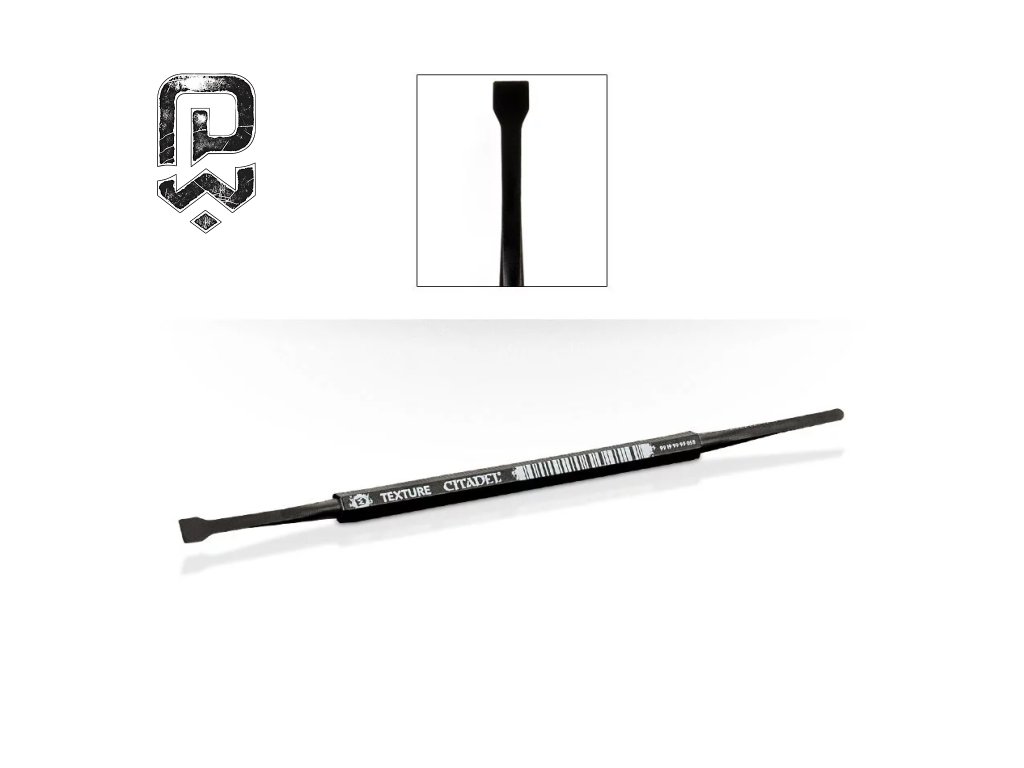 CITADEL MEDIUM TEXTURE SPREADER je nástroj určený na aplikáciu a tvarovanie textúrovacích farieb na podstavcoch miniatúr a herných terénoch. Umožňuje presné a kontrolované rozotieranie textúr bez zbytočného plytvania materiálom.