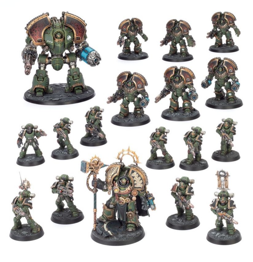 - Miniatury Legií Astartes: Tactical Squads, Terminators, Dreadnoughty, Praetoři a další jednotky připravené k sestavení a barvení.