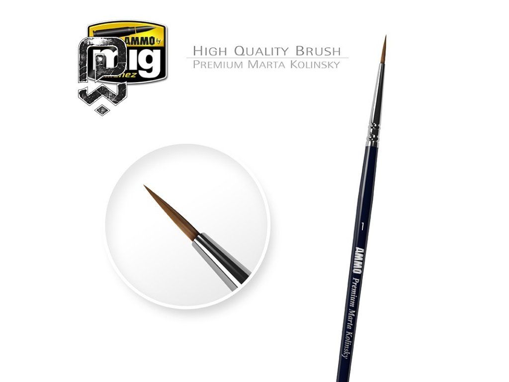 Premium High Quality okrúhly štetec veľkosť 1 je modelársky štetec vhodný na jemné detaily, linky, malé opravy náteru. ostrá špička ktorá drží tvar; plynulé uvoľňovanie farby bez kvapiek; presná kontrola aj pri ľahkom dotyku; žiadne rozstrapkanie štetín. maľovanie detailov v kokpite, zvýraznenie panelových liniek, drobné ošúchania, presné nanášanie washu do škár.