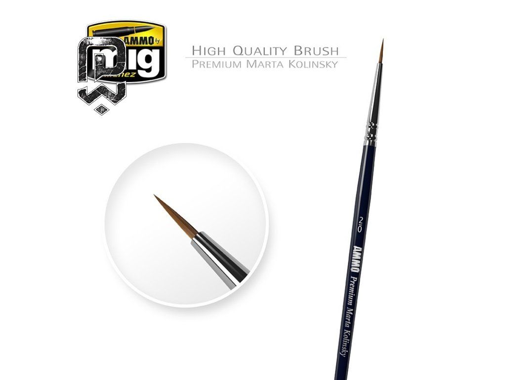 Premium okrúhly štetec 2/0 je jemný modelársky štetec vhodný na detailné maľovanie, tenké linky, drobné opravy, figúrky, wash a jemná patina. veľmi ostrá špička, drží tvar aj pri riedkej farbe, plynulé vedenie bez šmúh, presná kontrola nad množstvom farby, pohodlné držanie. maľovanie očí na figúrkach, zvýraznenie paneláže, drobné odreniny, nanášanie washu presne do škár bez roztečenia.