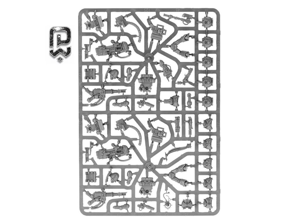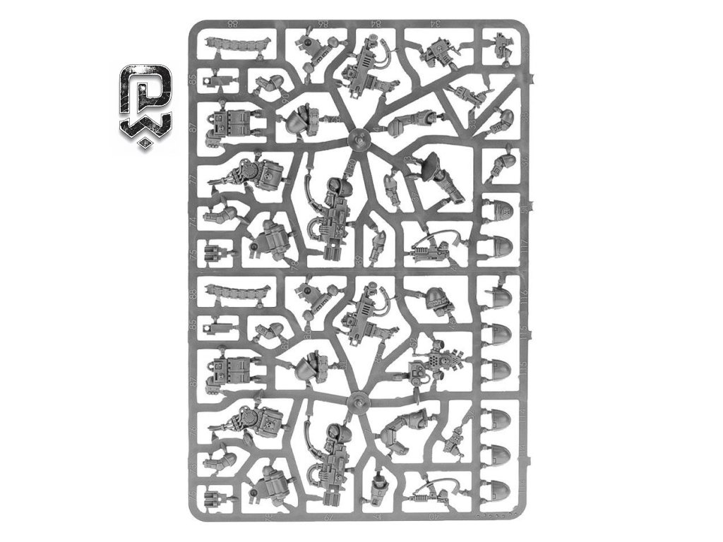 | Miniatúry / figúrky | 5× Space Marine Devastators, voliteľný seržant, 10× helmy, 6× páry nôh, 8× ramenné pláty, doplnky (servo lebky, purity seals, nábojnice). |