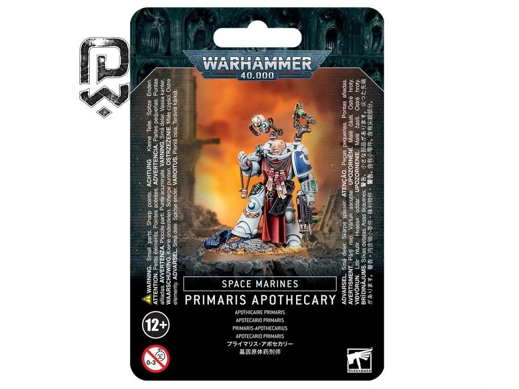 Primaris Apothecary je majster lekárskeho umenia Adeptus Astartes. Je vybavený pokročilou Mk X zbrojou, nartheciom a sadou chirurgických nástrojov, ktoré mu umožňujú vykonávať okamžité zákroky priamo v srdci bitky. Model je bohato detailný a ponúka voliteľné doplnky, vrátane padlého Space Marina na podstavci.