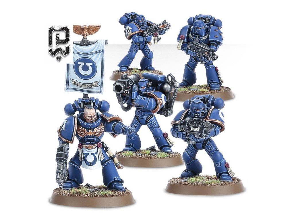 | Extra | 2× Ultramarines transfer sheet, bannery, purity seals, granáty, doplnky. |