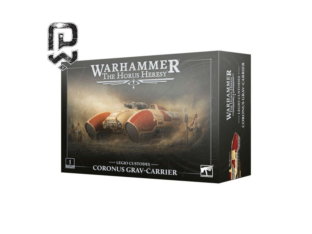 Coronus Grav-Carrier je pokročilé transportné vozidlo Legio Custodes z obdobia Horus Heresy. Vďaka gravitačnému pohonu sa pohybuje nad terénom, čo mu dáva výnimočnú rýchlosť a plynulosť pohybu. Slúži na bezpečný presun elitných jednotiek do rozhodujúcich pozícií, pričom zároveň pôsobí ako výrazný prvok na bojisku. Jeho dizajn odráža exkluzivitu Custodes – čisté línie, bohaté detaily a technologická dokonalosť.