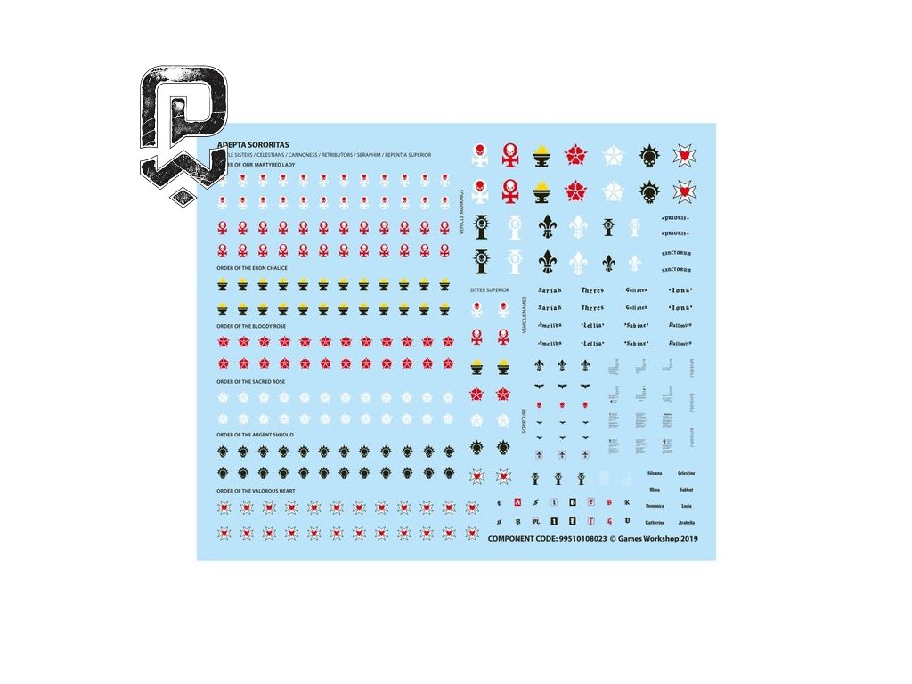 Táto viacdielna plastová stavebnica vám umožní zostaviť 10 Battle Sisters, sprevádzaných Incensor Cherubom. Každá sestra je vyzbrojená bolterom, ale kit ponúka bohatú škálu špeciálnych a ťažkých zbraní pre maximálnu palebnú silu. Alternatívne je možné z tejto sady postaviť jednotku Dominions – špecialistky na bleskové útoky.