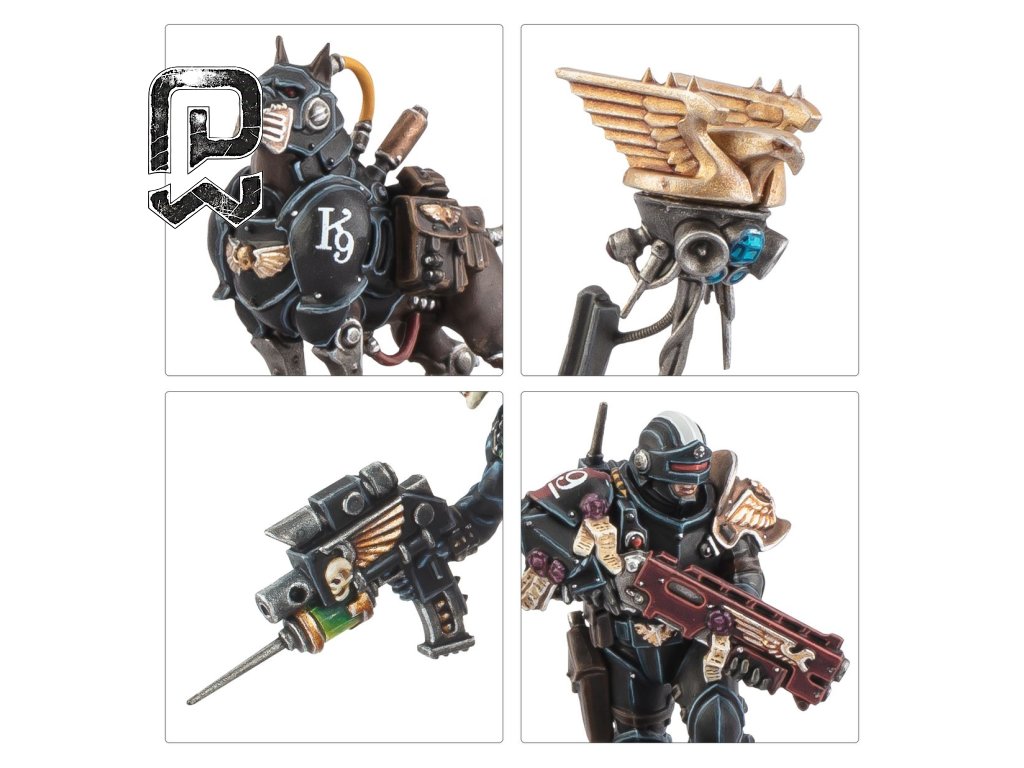 • Miniatury: Ministorum Priest s Vindictorem, Eversor Assassin, 6 Inquisitorial Agents (včetně Tome-skull), 20 Vigilant Squad s Cyber-mastiffy a Nuncio-aquilas.