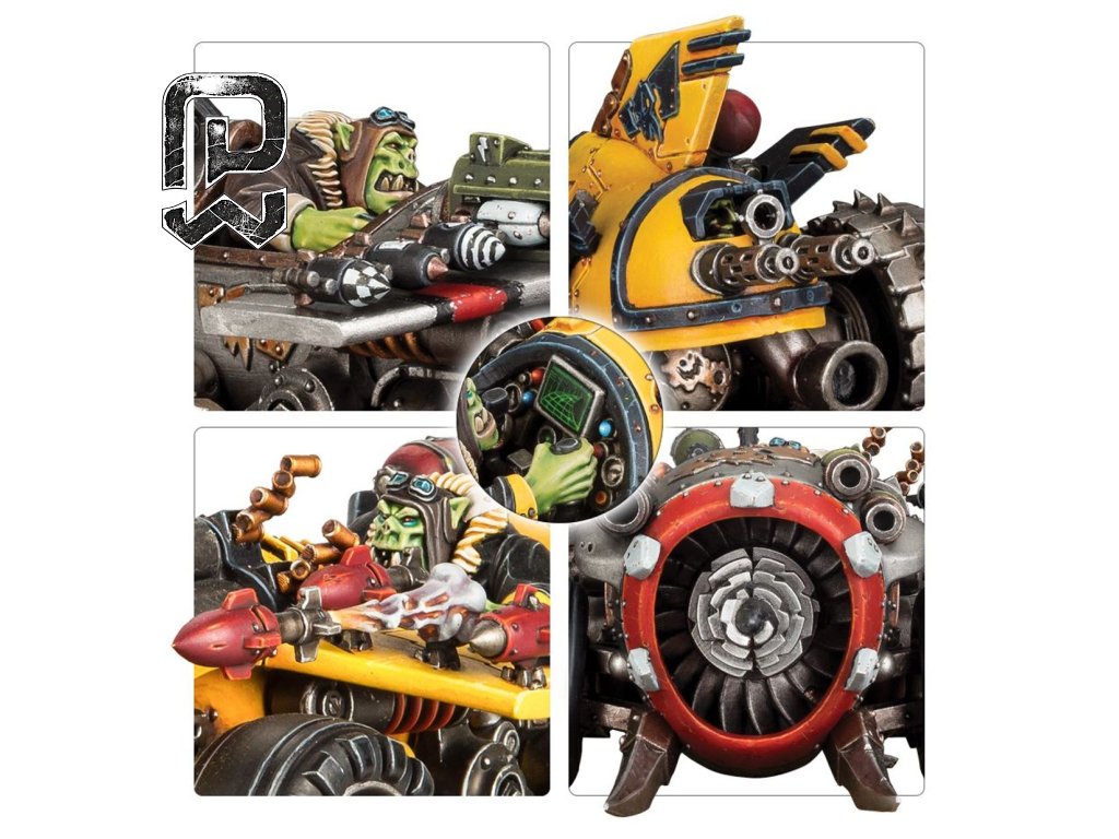 Unikátne prvky / exkluzivita: Postavené z trupu havarovaného Ork lietadla, obsahuje rokkit kannon s pásovým podávačom, rakety v odpale, predný vrták, ostnaté nárazníky, dvojité big shootas a zadného strelca Grot. Sada obsahuje 65 detailných dielov na úpravu.