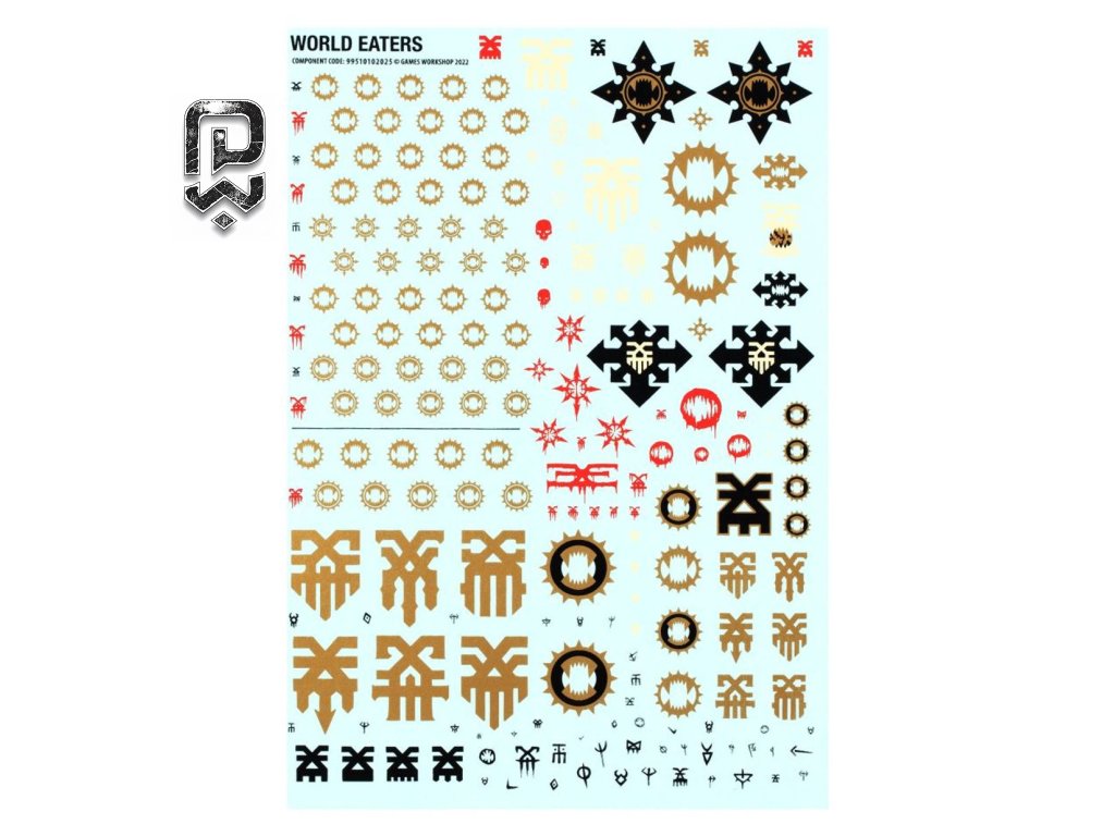 • Herní doplňky: Podstavce různých velikostí, 2x transfer sheet s motivy World Eaters – pro dokonalé doladění vzhledu tvé armády.