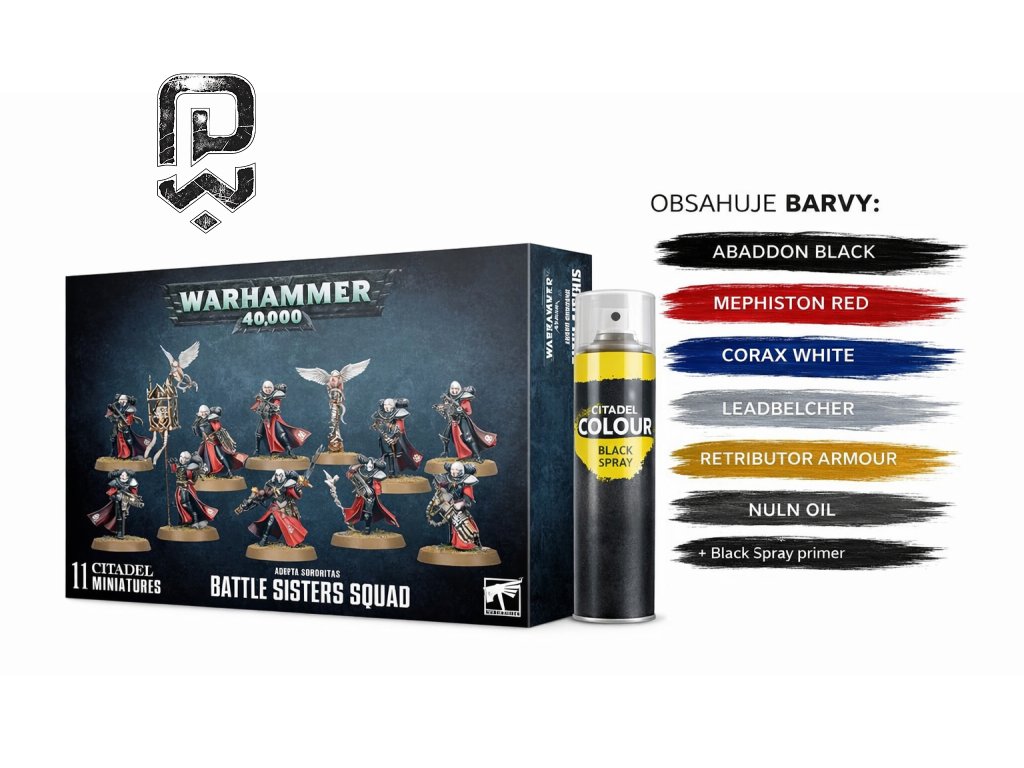| Primer | Doporučený podklad: Citadel Chaos Black Primer – ideální pro černou zbroj a kontrastní sororitas schéma. (Primer není součástí balení, ale výrazně usnadní malování.) |