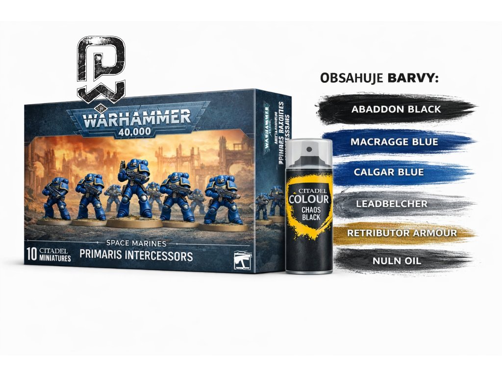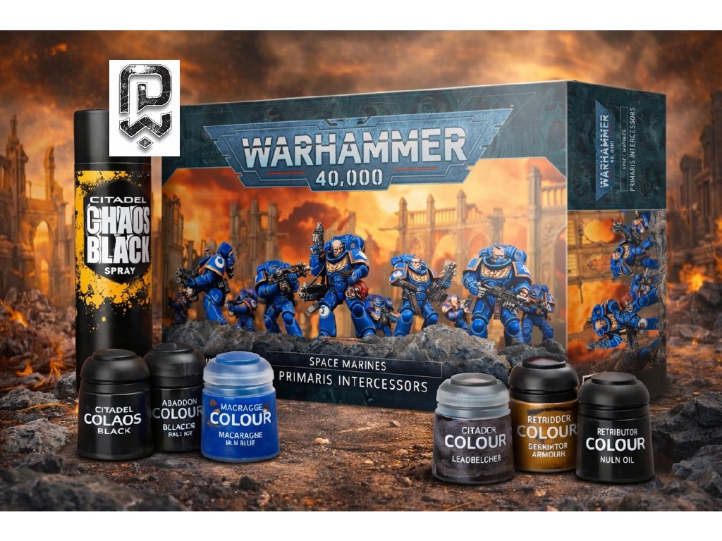 All-in-one balení pro vstup do světa Warhammer 40,000. Obsahuje ikonickou jednotku Primaris Intercessorů a kompletní sadu barev a štětců – bez nutnosti dalšího vybavení.