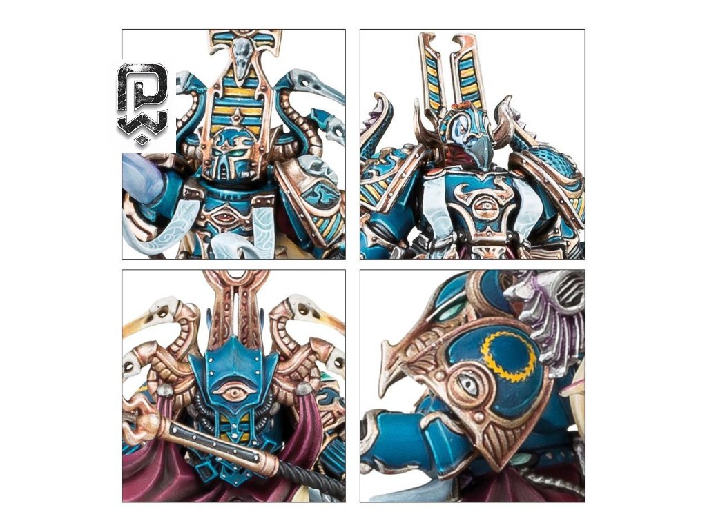 Exalted Sorcerers jsou elitní HQ jednotkou Thousand Sons, známou pro svou brutální psychickou sílu a schopnost manipulovat tokem bitvy. Každý model je unikátní – jeden se vznáší na disku Tzeentche, další levituje na plameni warpové energie a třetí kráčí vpřed jako tradiční arcimág. Sada obsahuje množství hlav, ramen, staff topperů a dalších dílů, které umožňují rozsáhlou customizaci.