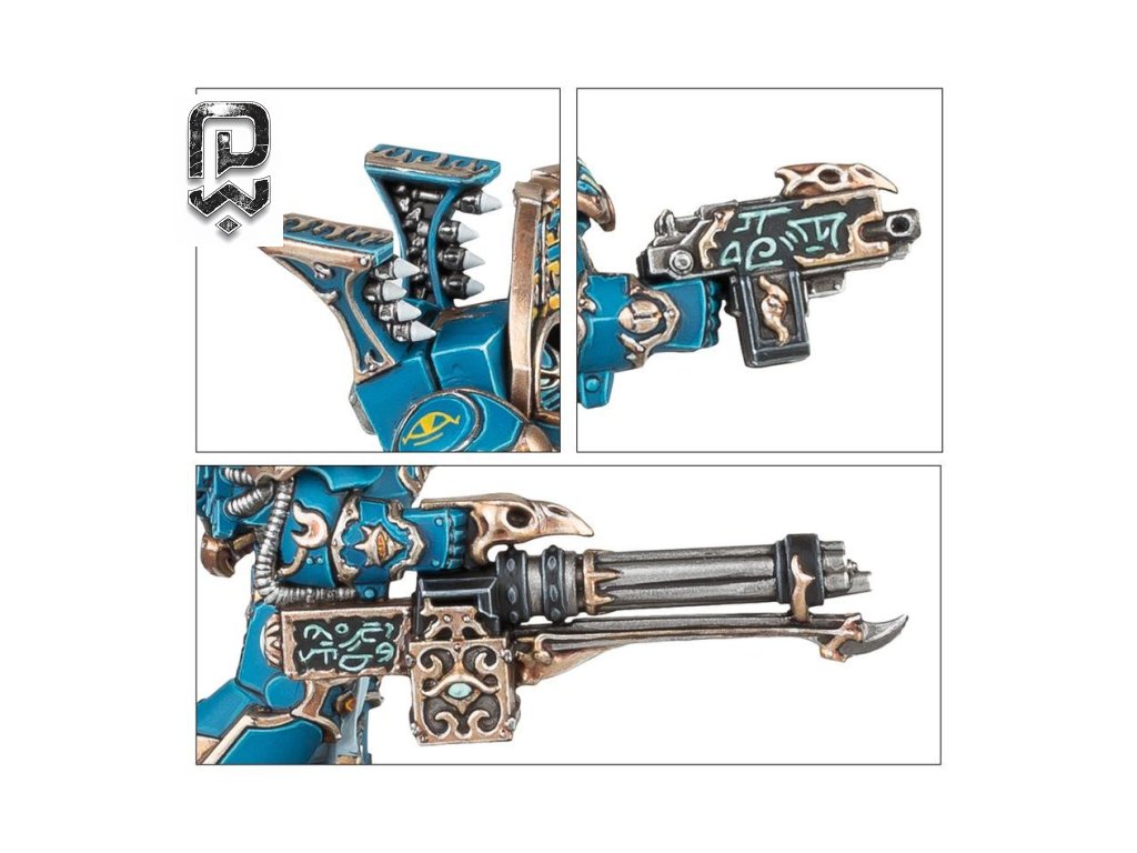 Scarab Occult Terminators představují nejvěrnější a nejmocnější bojovníky legie Thousand Sons. Obklopeni auru nekonečné magie a oděni v těžké terminátorské zbroji, kráčí vpřed jako nezastavitelná síla, která kombinuje brutální palebnou sílu, psychické schopnosti a rituální bojové umění.