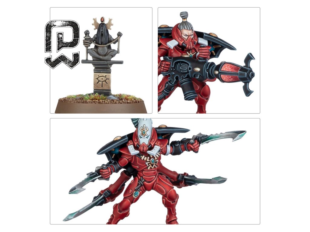 Tato sada obsahuje pět Warp Spiderů – bleskově rychlé bojovníky pro použití v armádách Aeldari ve hrách Warhammer 40,000. Proplétají se Warpem a trhají nepřátele na kusy v oblaku monofilamentových vláken. Jeden člen jednotky může být sestaven jako volitelný Warp Spider Exarch s možností výběru zbraní: powerblades, death weavers, spinneret rifle nebo Exarch's death spinner. Součástí jsou různé volby hlav, dekorativní prvky podstavců a token svatyně aspektu Warp Spider.