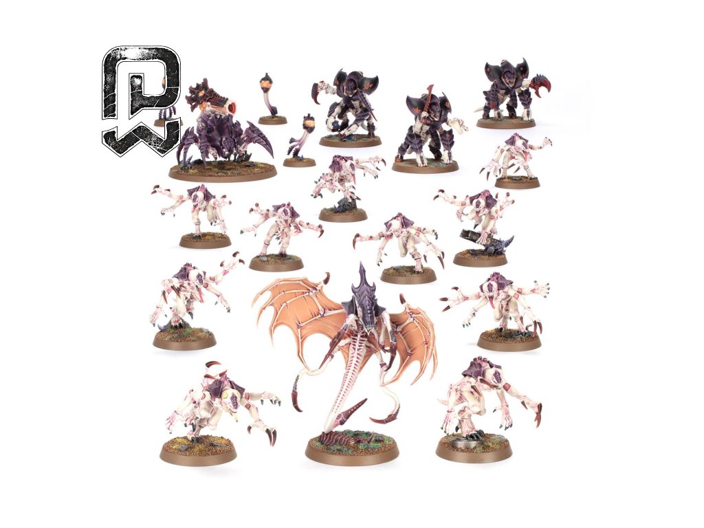 | Miniatury / figurky | 18 Tyranid miniatur: 1× Parasite of Mortrex, 3× Tyrant Guard, 1× Biovor, 3× Spore Mines, 10× Genestealeři |