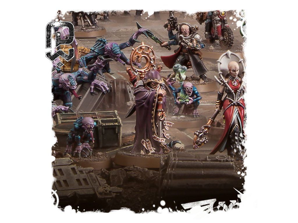 - Miniatury frakcí: Space Marines, Tyranidi, Necroni, Chaos, Orkové a další.