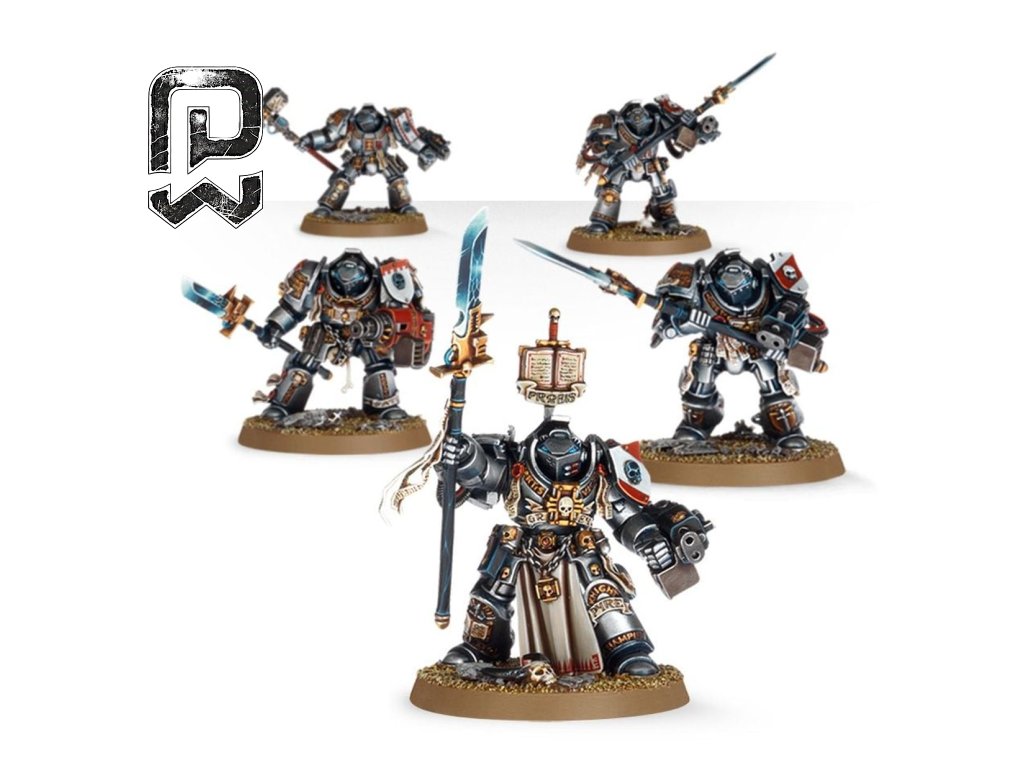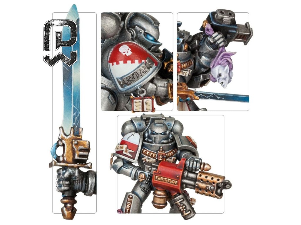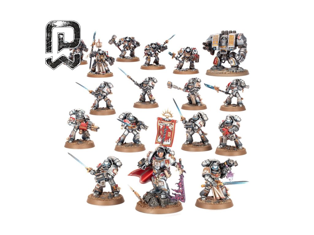| Figurky / komponenty | 1x Castellan Crowe, 10x Strike Squad, 5x Brotherhood Terminators, 1x Venerable Dreadnought, 1x Dreadnought Base, 6x 40mm Round Bases, 10x 32mm Round Bases |