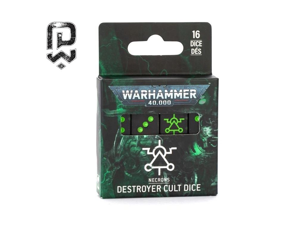 Tematická sada oficiálních kostek pro Warhammer 40,000 laděná do estetiky Necron Destroyer Cult. Přehledný potisk, ikonická „šestka“ a dostatek kostek pro rychlé hody při větších bitvách. Stylový doplněk k armádě Necronů i praktická výbava na turnaje.