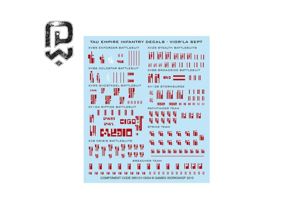 Použití: Bílé T'au značky, čisté panely a ostré technologické akcenty.