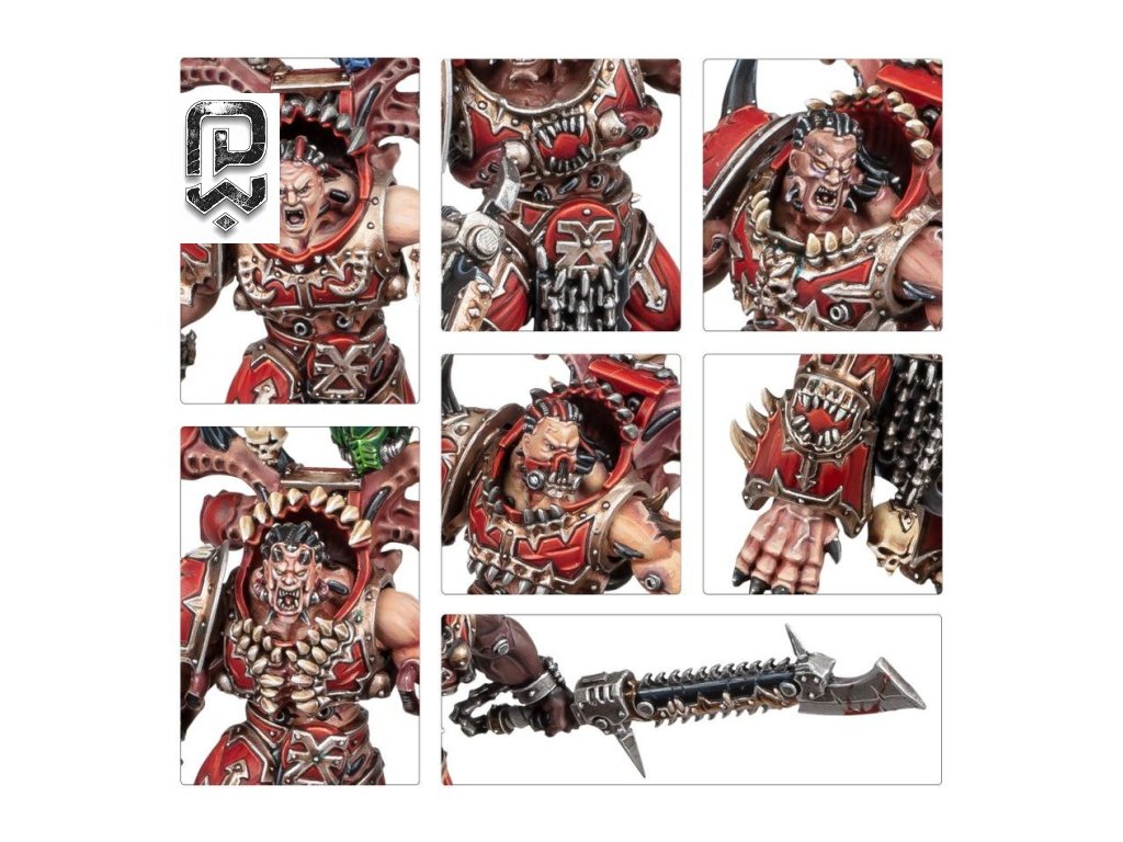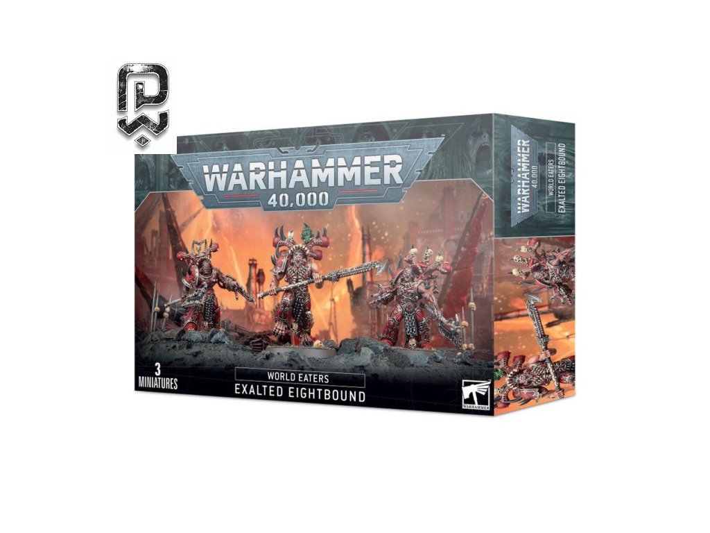 Exalted Eightbound představují vrchol zvrácené symbiózy mezi válečníkem World Eaters a osmi démony Khorna. Tito mutovaní berserkeři jsou čistou esencí zuřivosti, která se na bojišti mění v nezastavitelnou bouři řetězových čepelí a brutální síly.